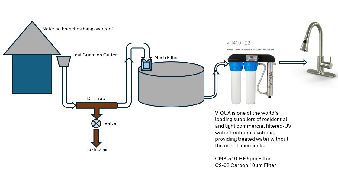 Enjoy pure filtered rain water here. The property does not have well water which is now discouraged by the county. Plus well water has a variety of compounds which give it an aroma and hardens the water. Learn more below.